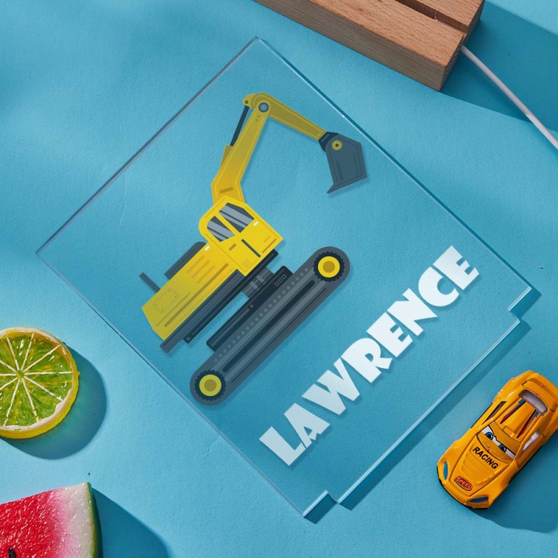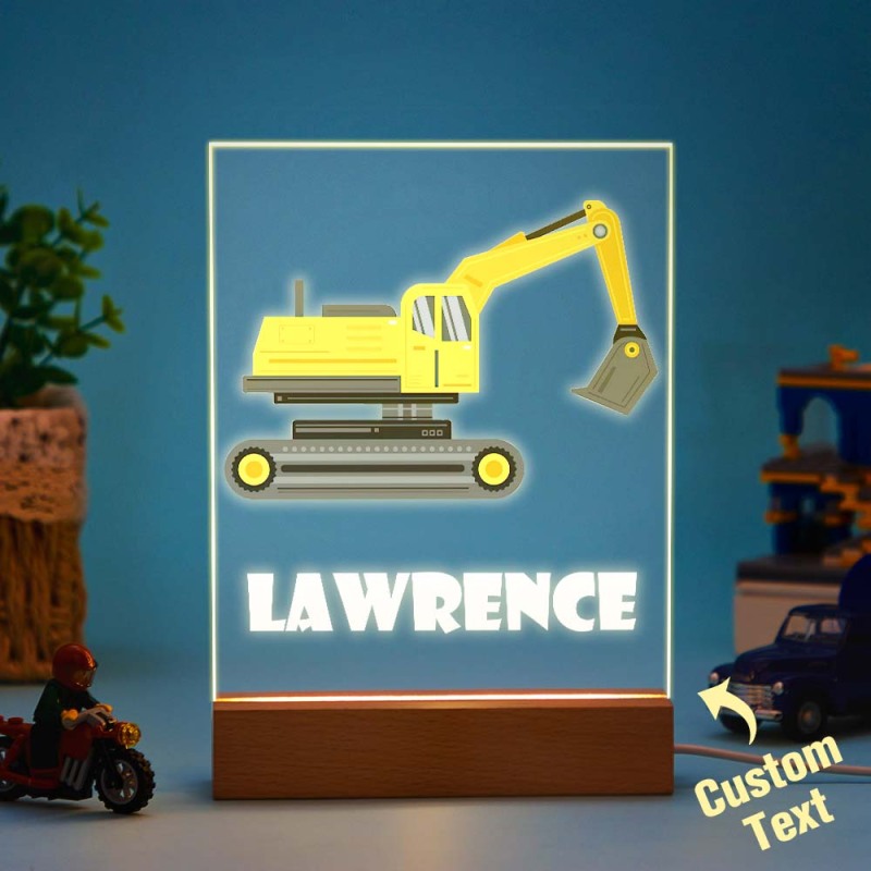 Construction Digger Personalised Night Light Kids Bedroom Nursery Night Light Custom Light Child's Playroom Gift For Kids