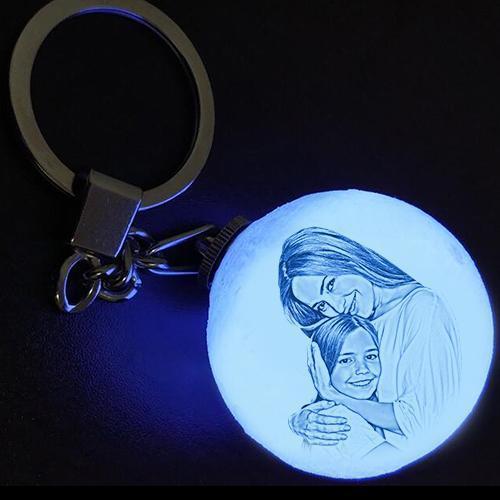 Custom Color Photo Keychain 3D Printed Moon Lamp For Mom