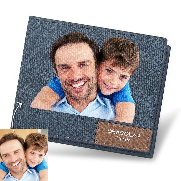 Idea for Father‘s Day Custom Blue Leather Color Photo Wallet for Dad
