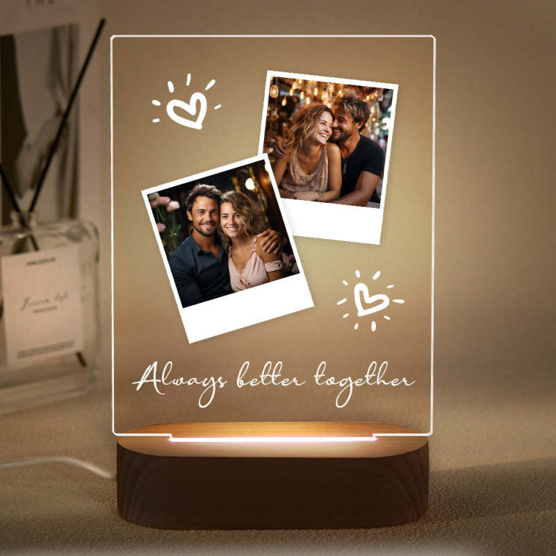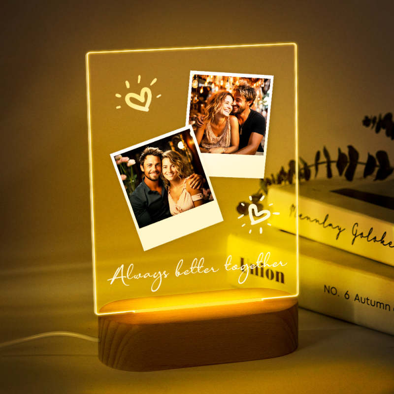 Custom Engraved Couple Gift Personalised Photo Polaroid Plaque LED Night Light