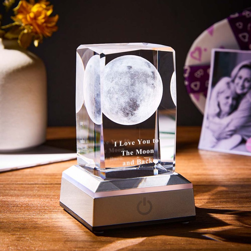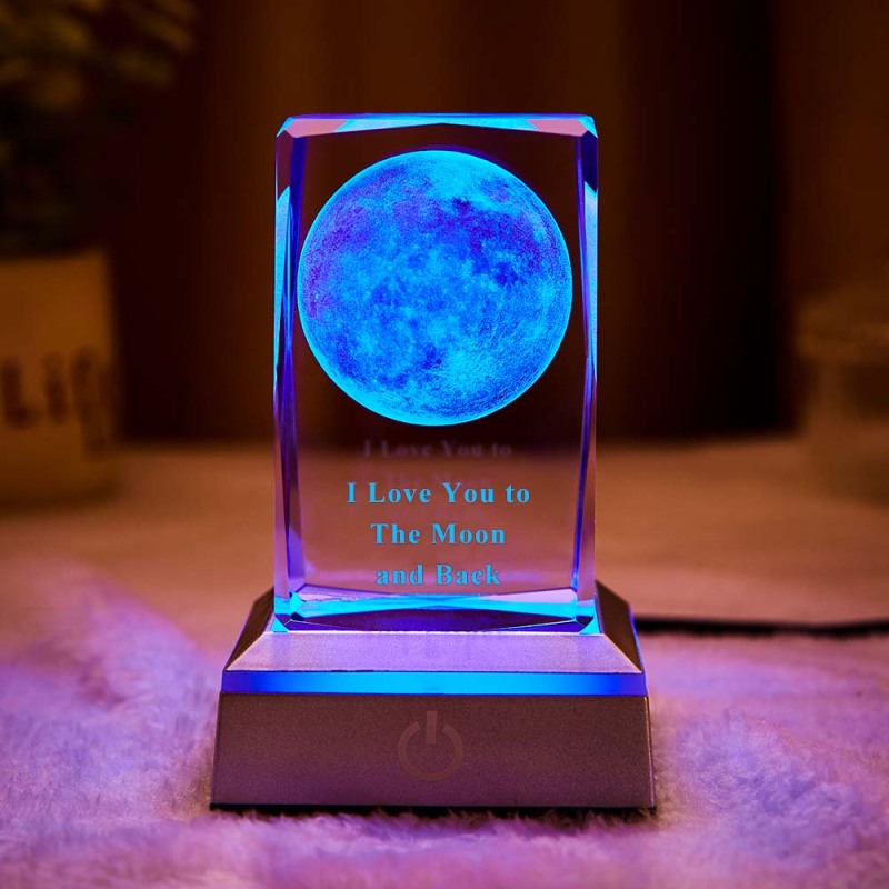 Custom Engraved Lamp 3D Moon Crystal LED Colourful Light Gift for Mom