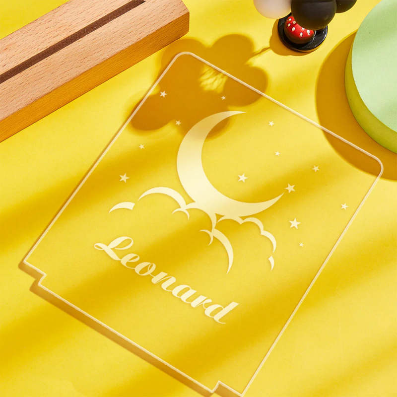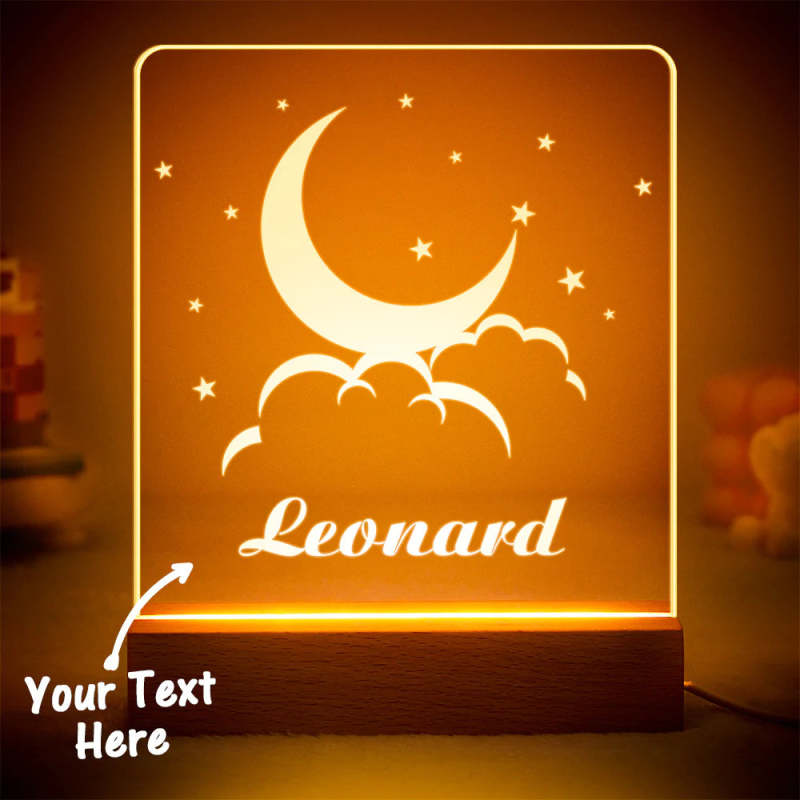 Custom Engraved Moon and Clouds LED Night Light Personalised Acrylic Kids Lamp for Bedroom