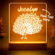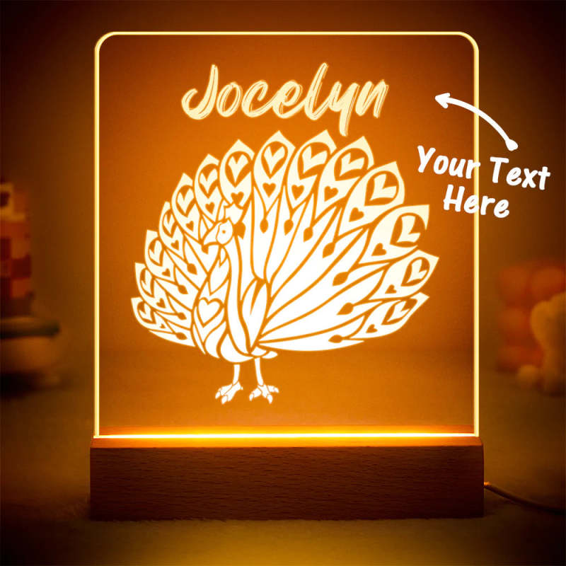 Custom Engraved Peacock Night Light LED Acrylic Night Light Bedroom Decor Gift for Kids