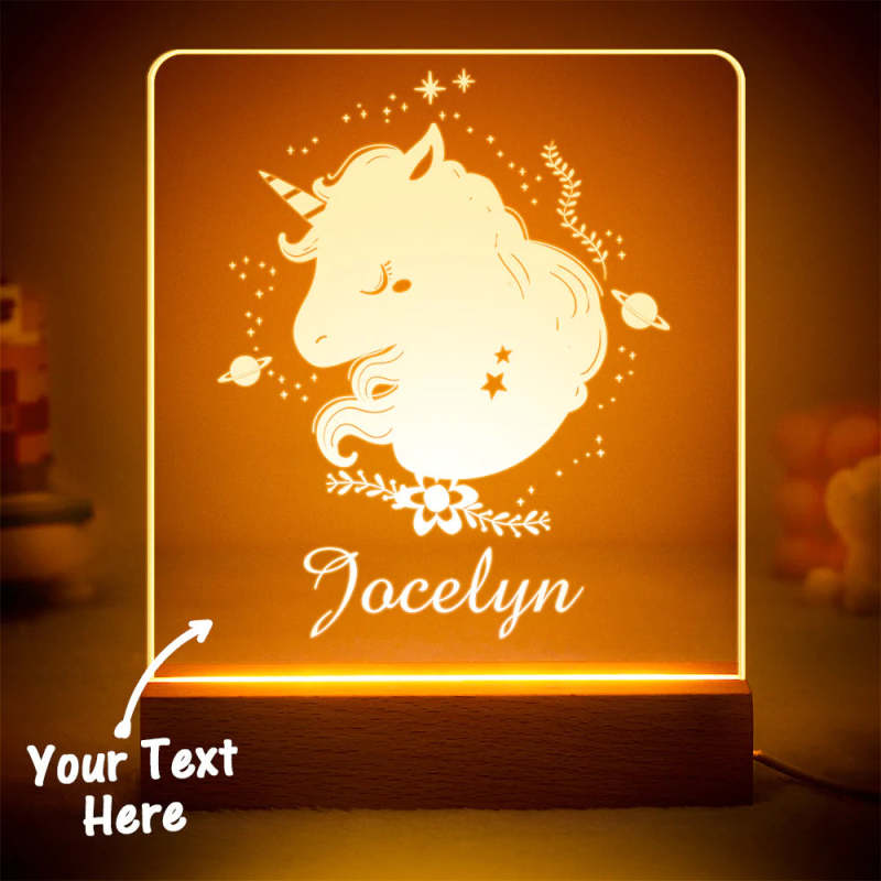 Custom Engraved Unicorn LED Night Light Acrylic Lamp Kids Bedroom Decor