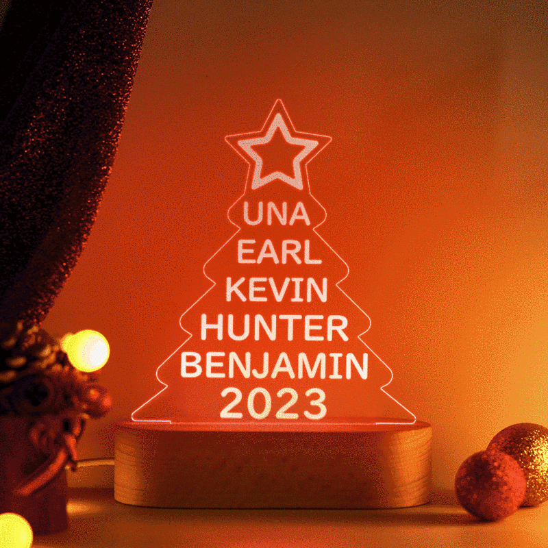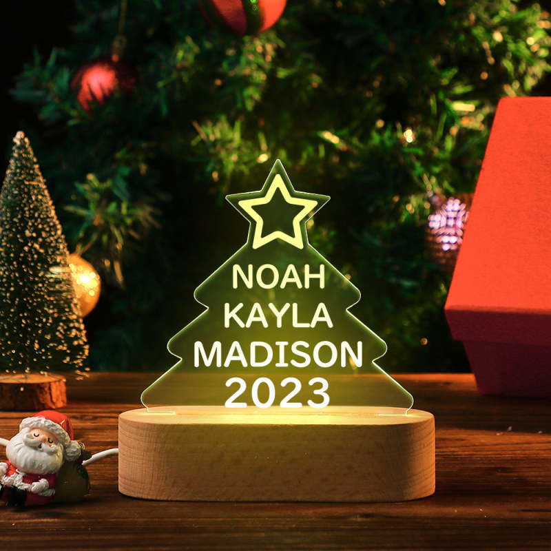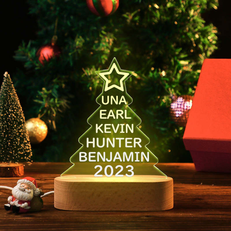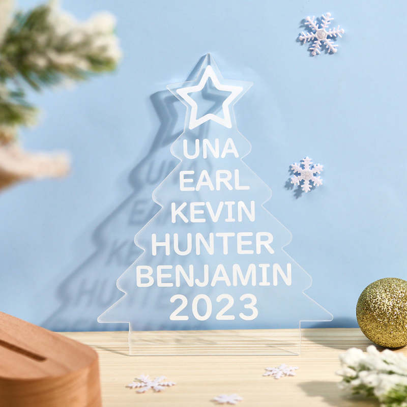 Custom Family Names Christmas Tree Night Light Colorful Acrylic Lamp Christmas Day Gifts