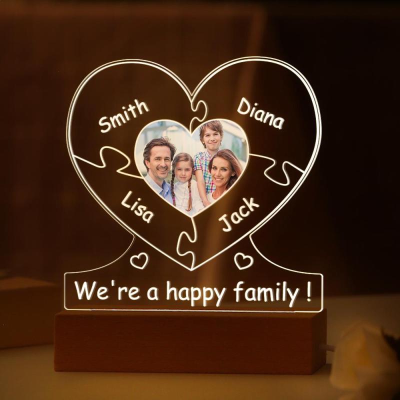 Custom Family Photo Light Named Puzzle Lamp Gifts for DAD Mom Personalised Night Light