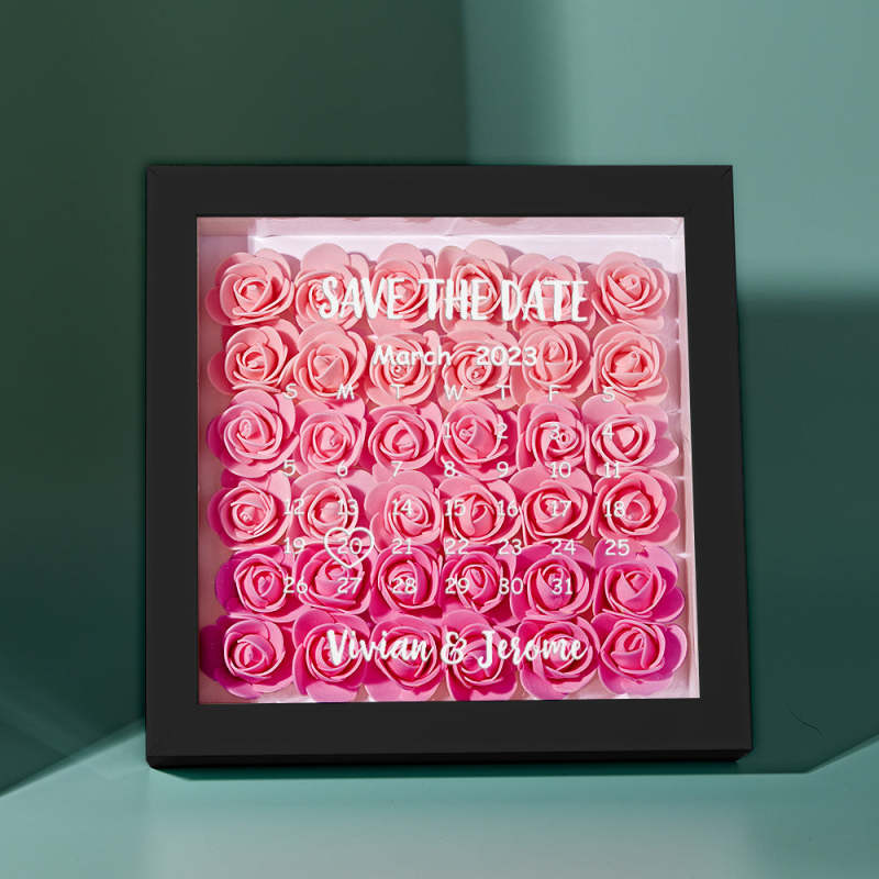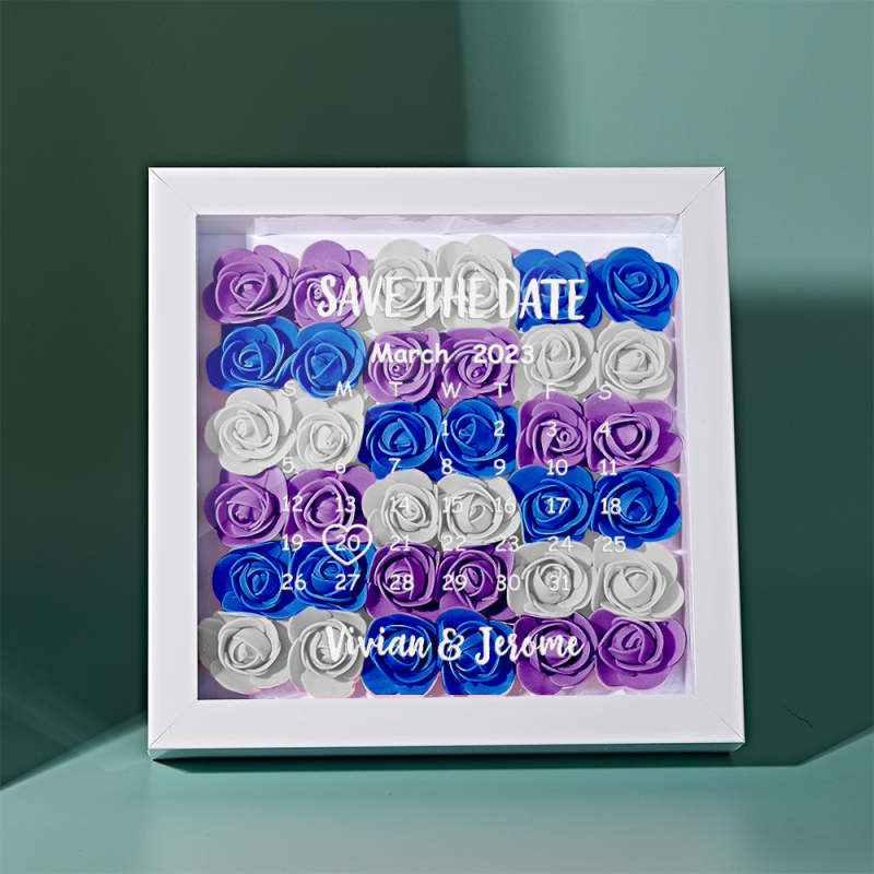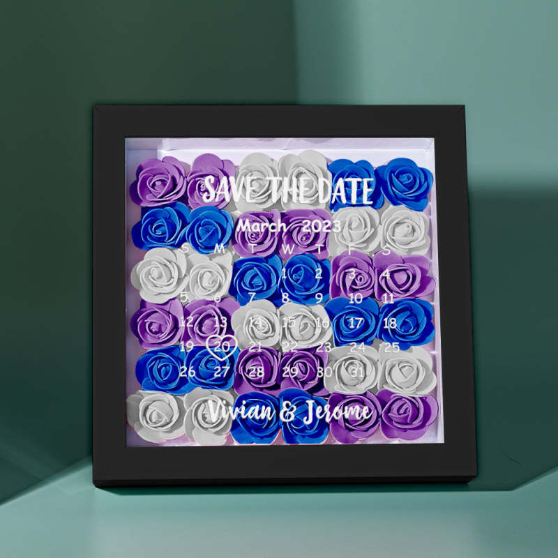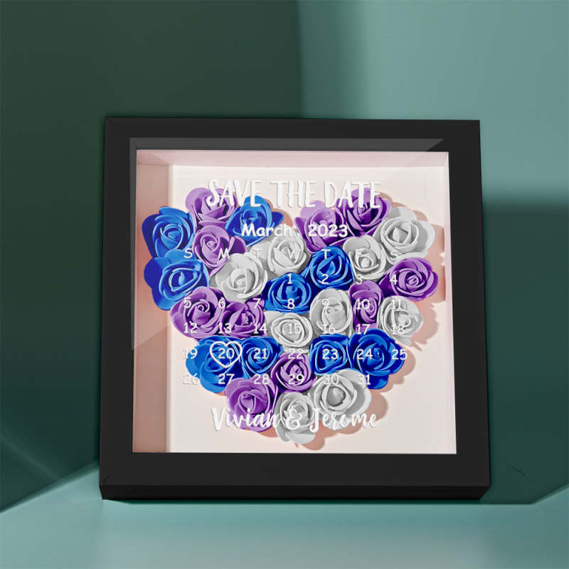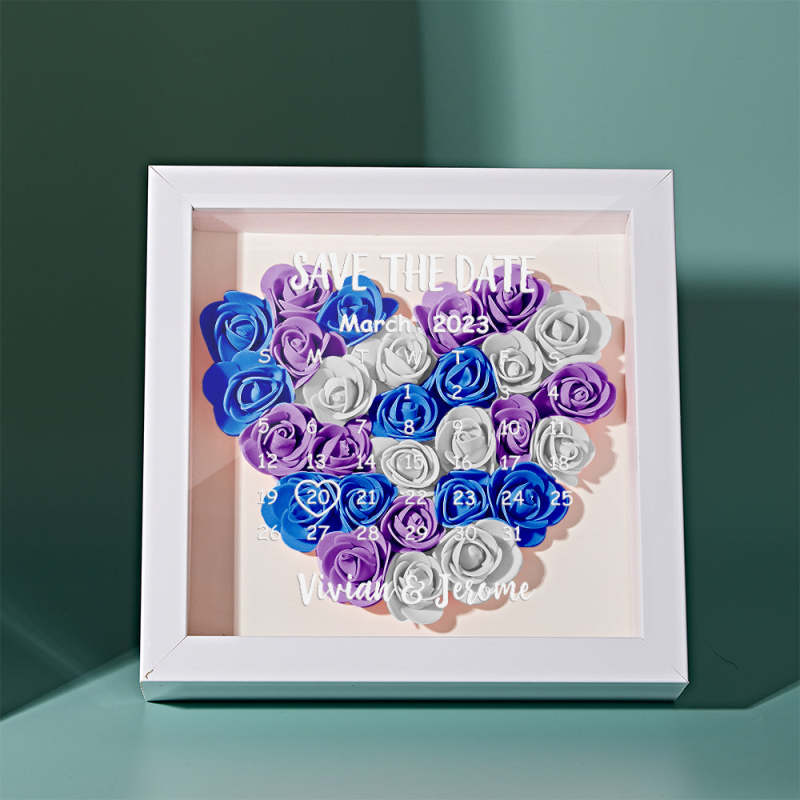 Custom Flower Shadow Box Personalized Calendar Flower Shadowbox Frame Gift
