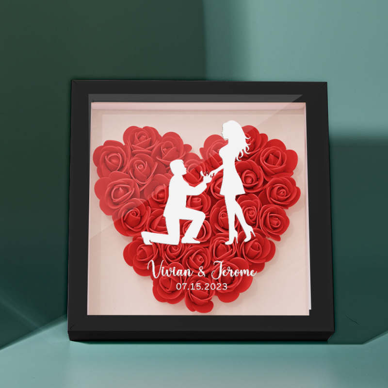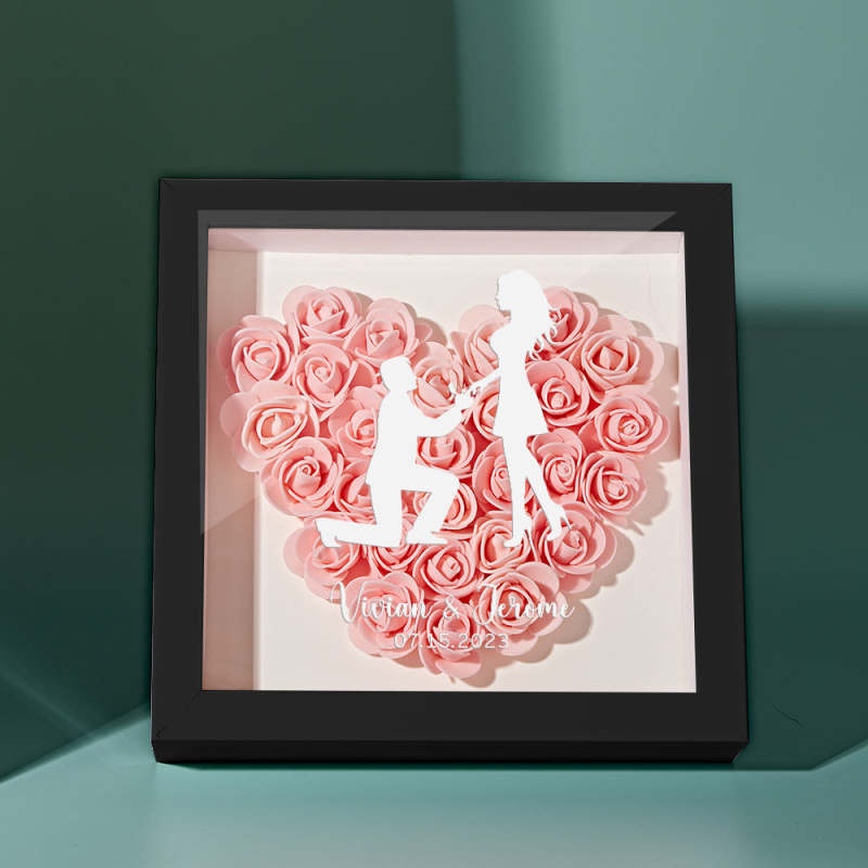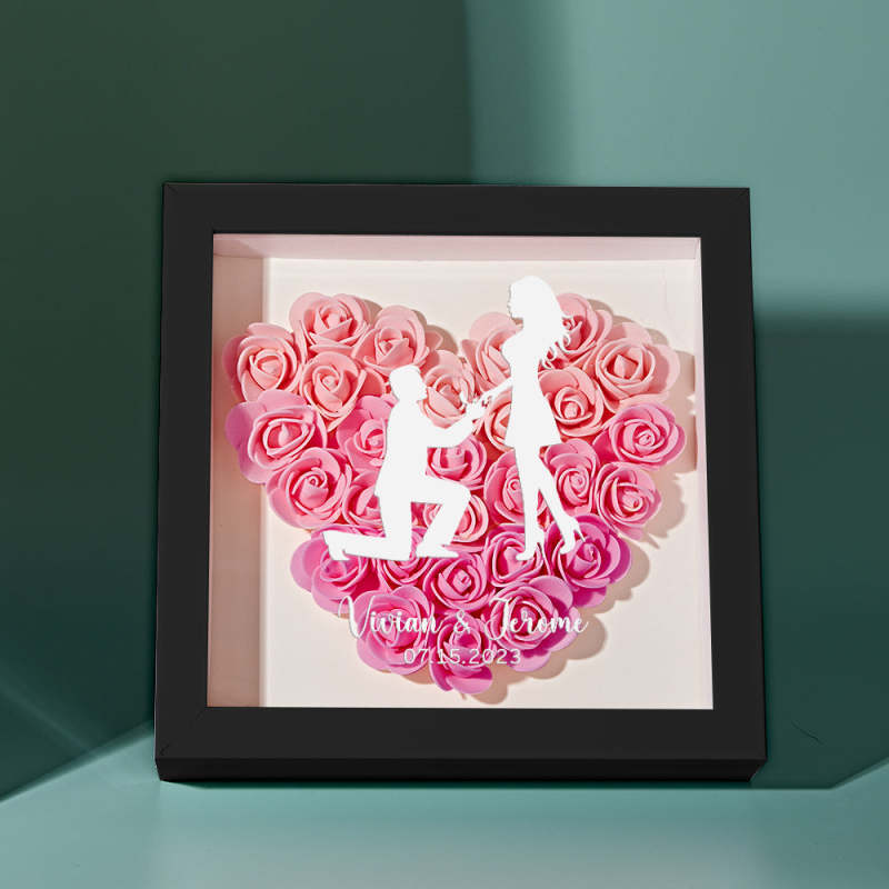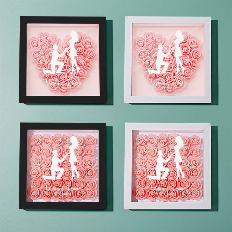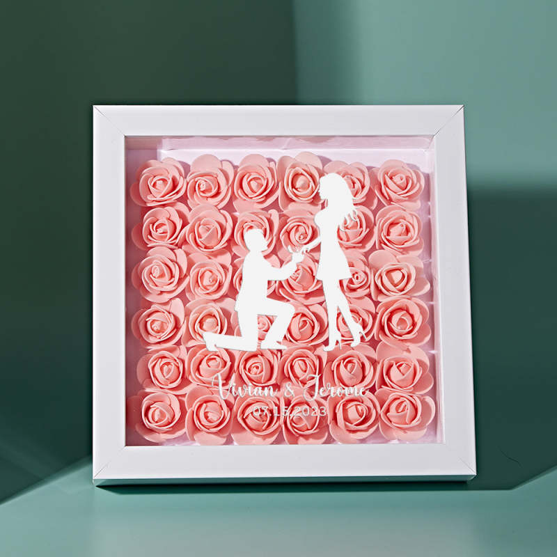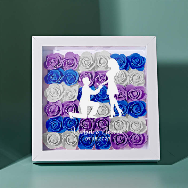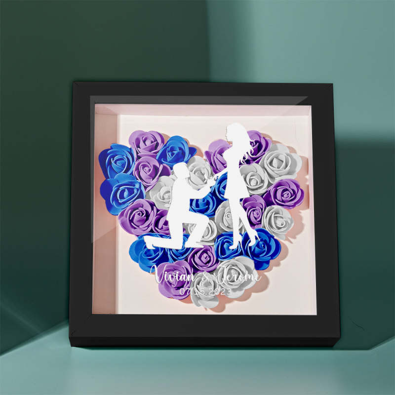 Custom Flower Shadow Box Personalized Name Flower Shadowbox Frame Gift for Couple