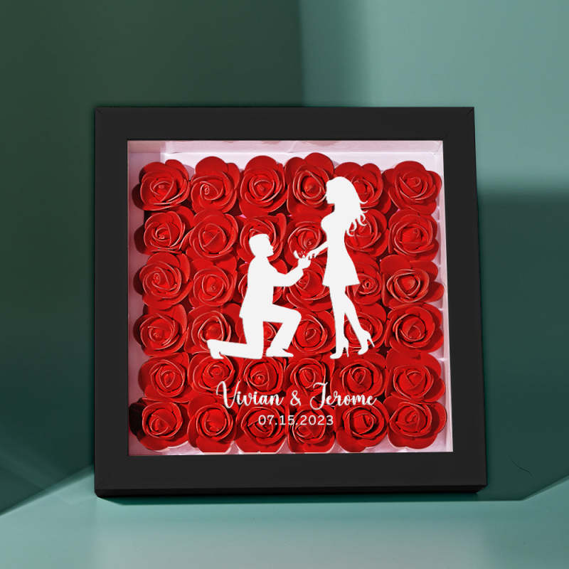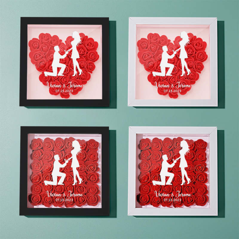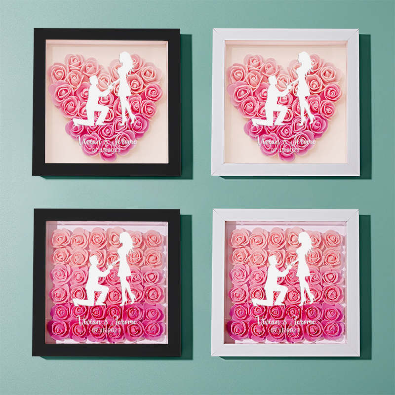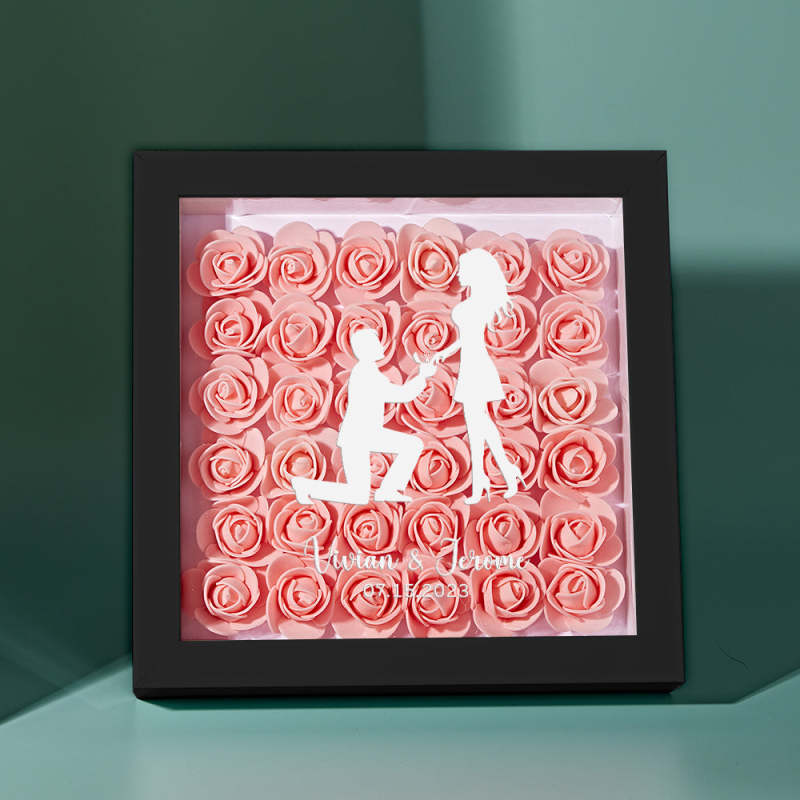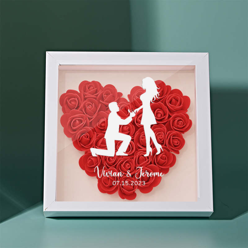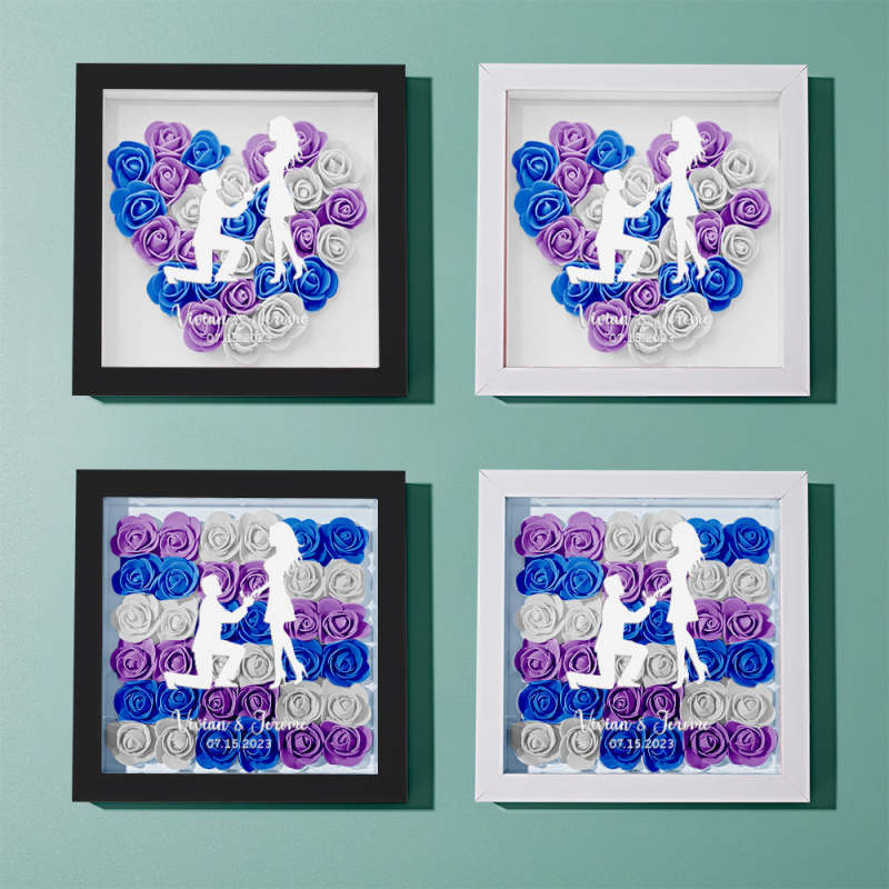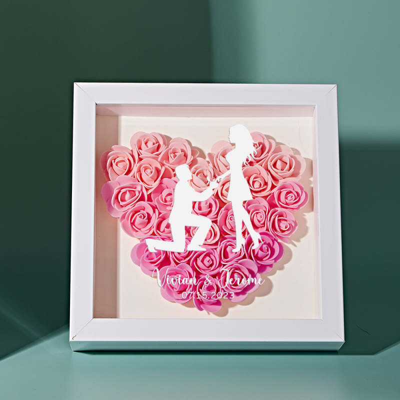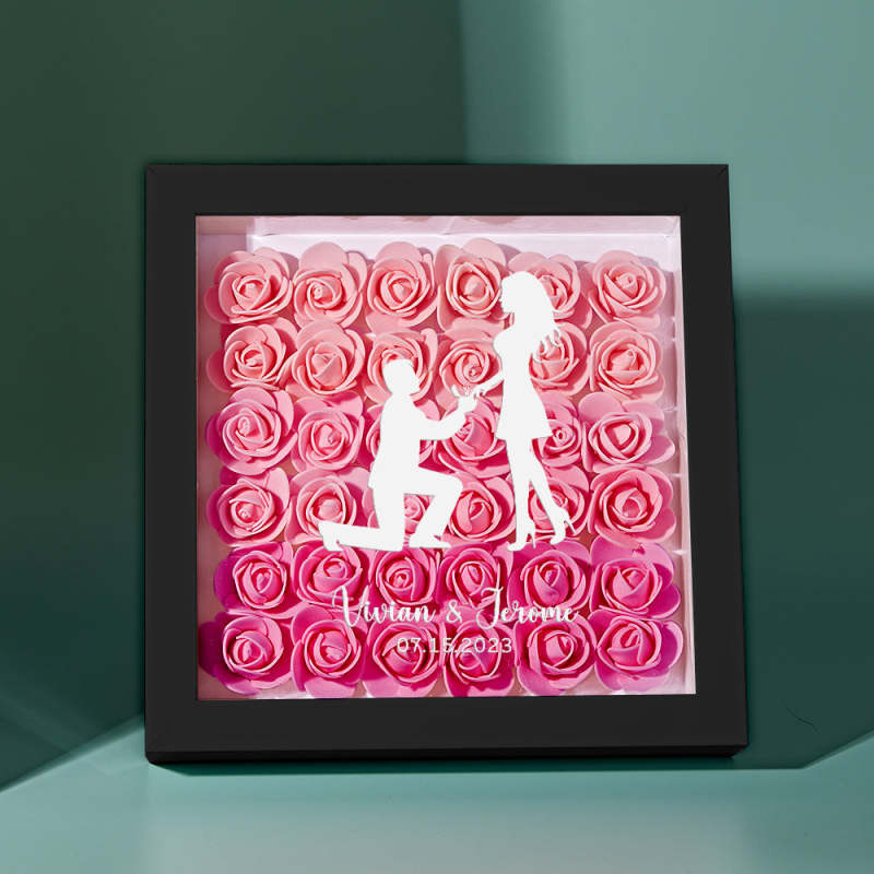 Custom Flower Shadow Box Personalized Name Flower Shadowbox Frame Gift for Couple