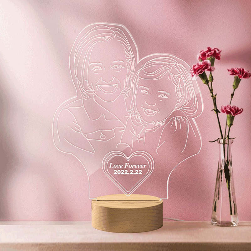 Custom Heart-shaped Engraved 3D Photo Lamp Led Personalised Night Light Gift for Mom