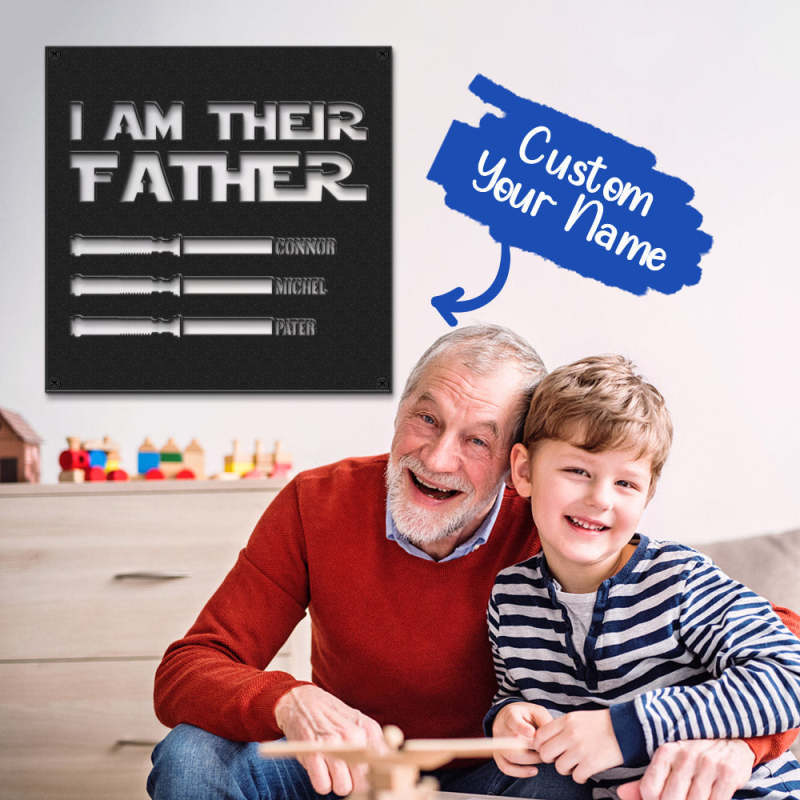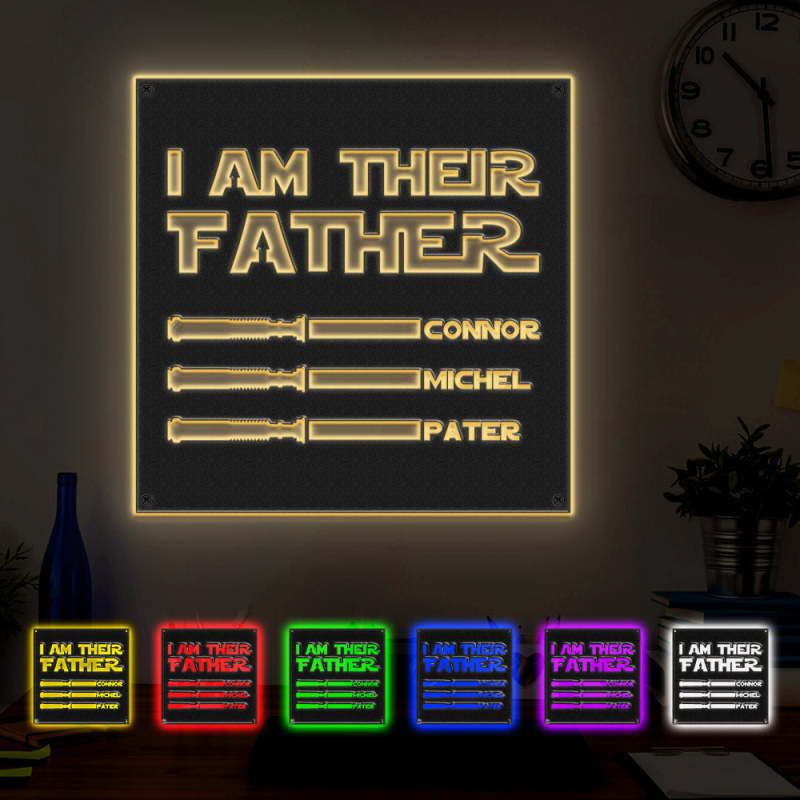 Custom I Am Their Father Metal Sign Personalized Light Saber LED Lights Wall Art Decor Father's Day Gift