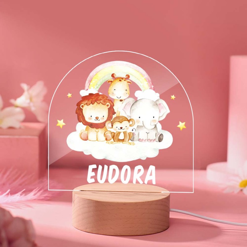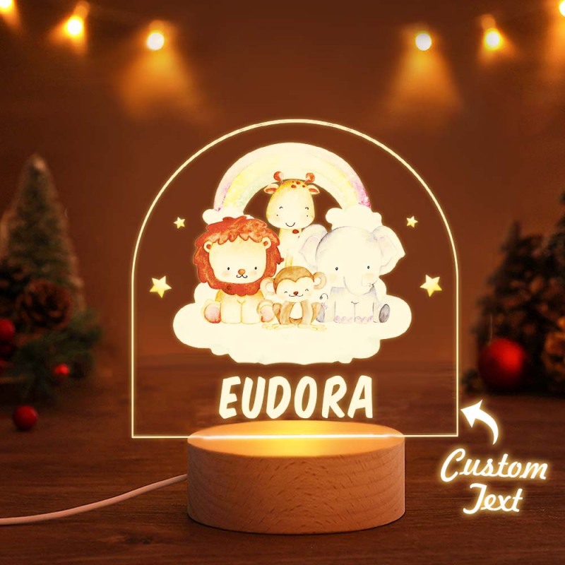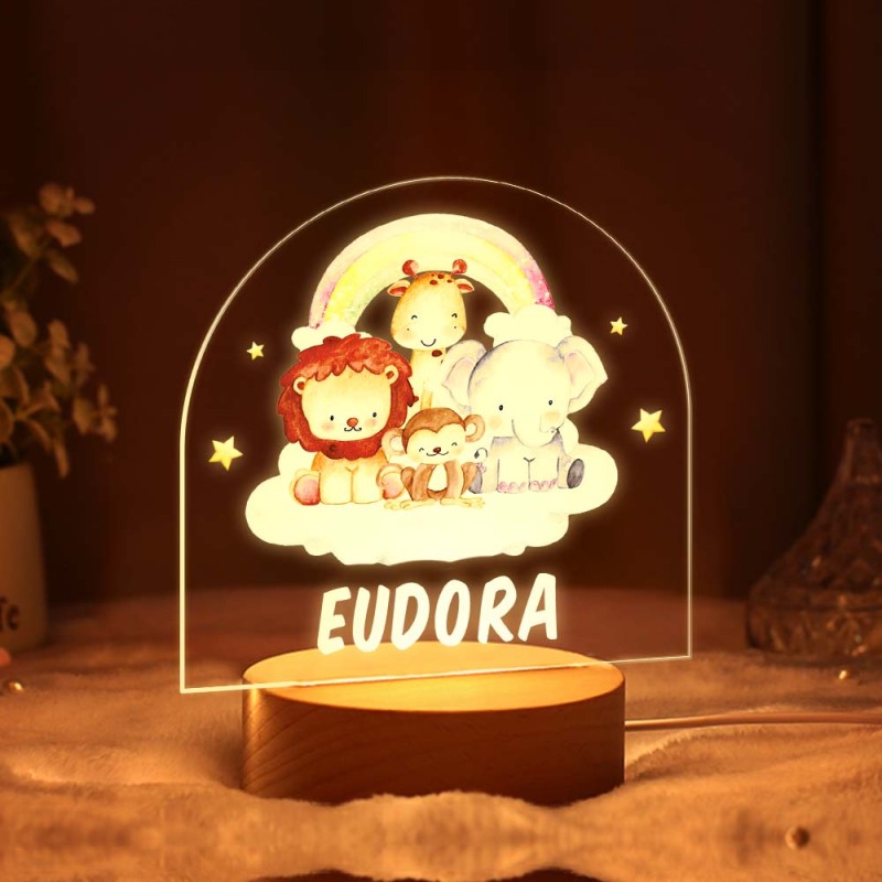 Custom Name Acrylic Night Light Personalised Lamp Jungle Animal Desk Lamp Gift for Kids Adult
