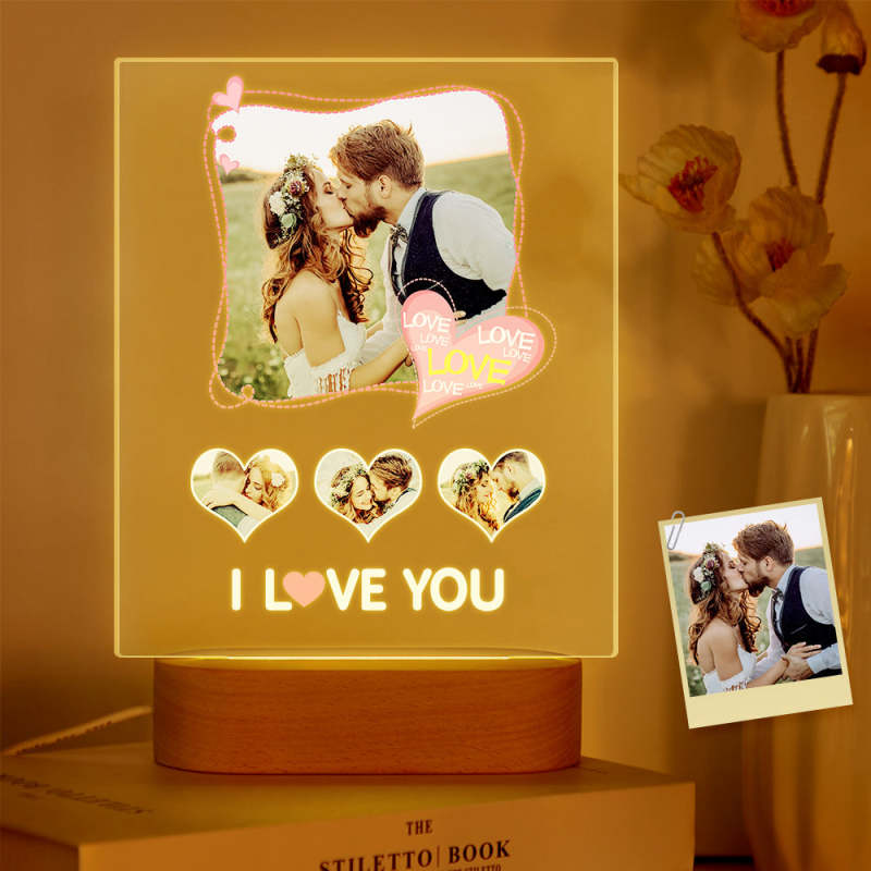 Custom Photo Acrylic Lamp Personalized I Love You Acrylic Plaque Picture Frame Anniversary Gifts