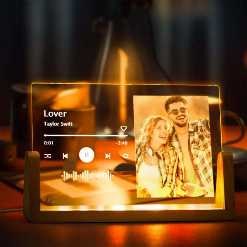Custom Photo Acrylic Song Plaque,Personalized Music Plaque,Night Light Lamp with Music Code, Anniversary Gift