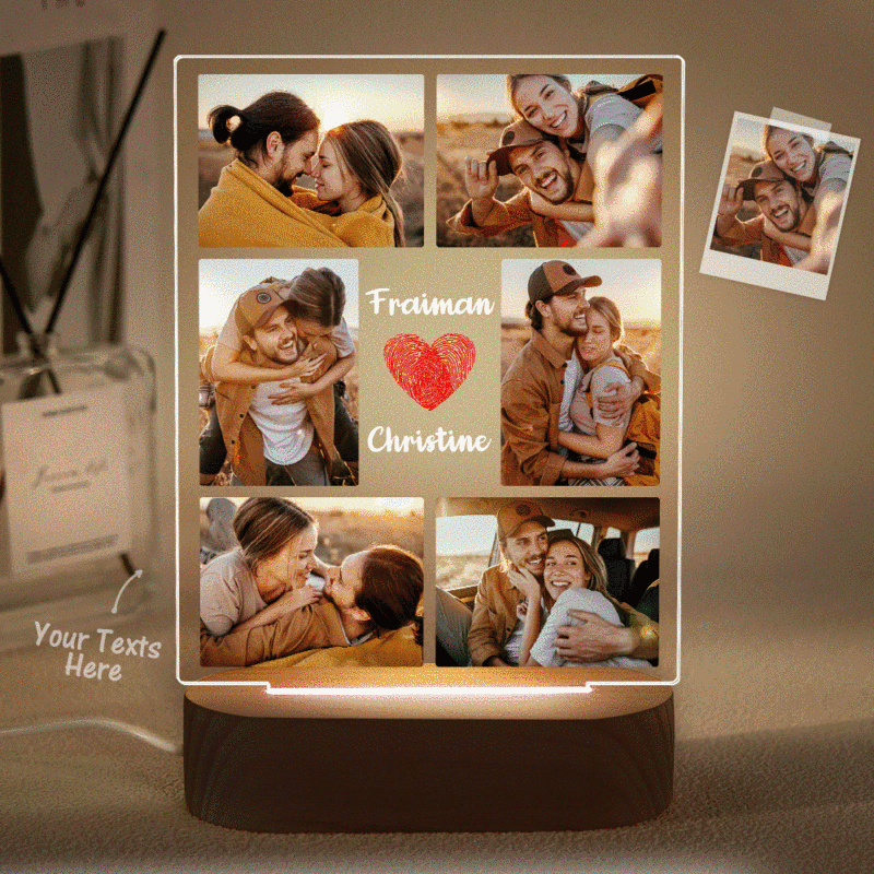 Custom Photo Collage Led Night Light Personalized Name Couple Gift Wedding Anniversary