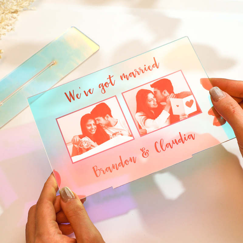 Custom Photo Transparent Gradient Color Acrylic Ornaments Personalized Engraved Keepsake for Couples