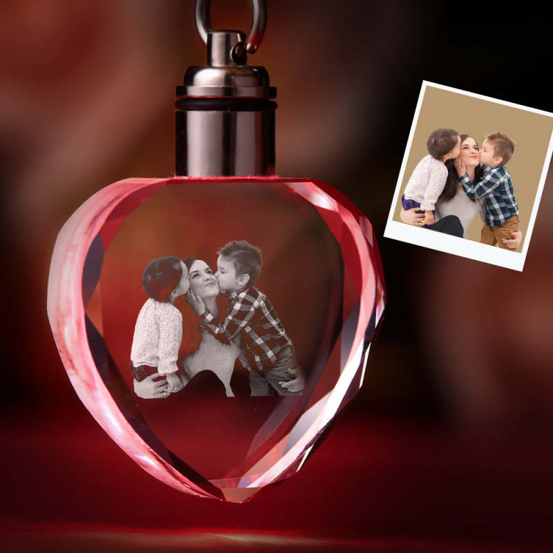 Custom Photo Crystal Keychain Family Keepake Crystal Keychain Heart Shape Photo Keychain