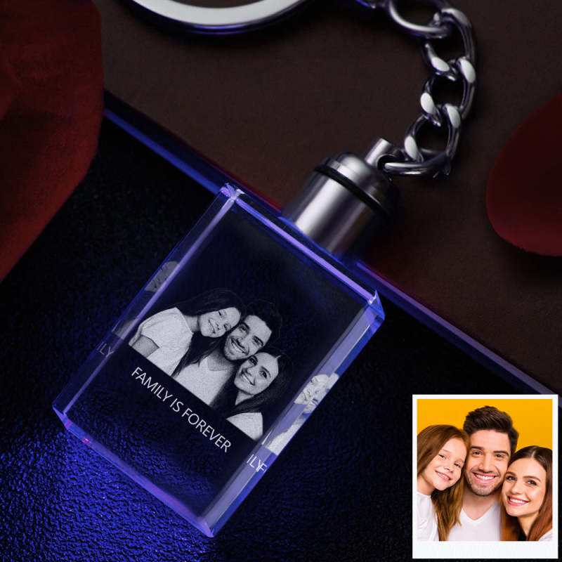 Gift for Dad Custom Photo Crystal Keychain Family Keepake Crystal Keychain Rectangle Shape Photo Keychain