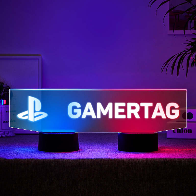 Custom Playstation Nightlight Personalised Gamertag Sign Dual Base Backlit LED Custom Gaming Gift