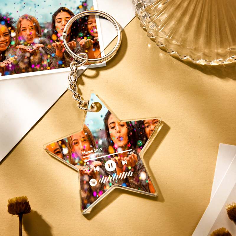 Custom Scannable Spotify Code Keychain Star Photo Creative Gift for Friends
