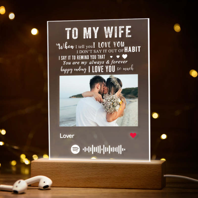 Custom Spotify Code With Photo Engraved Text Night Light Acrylic Plaque Anniversary Gift