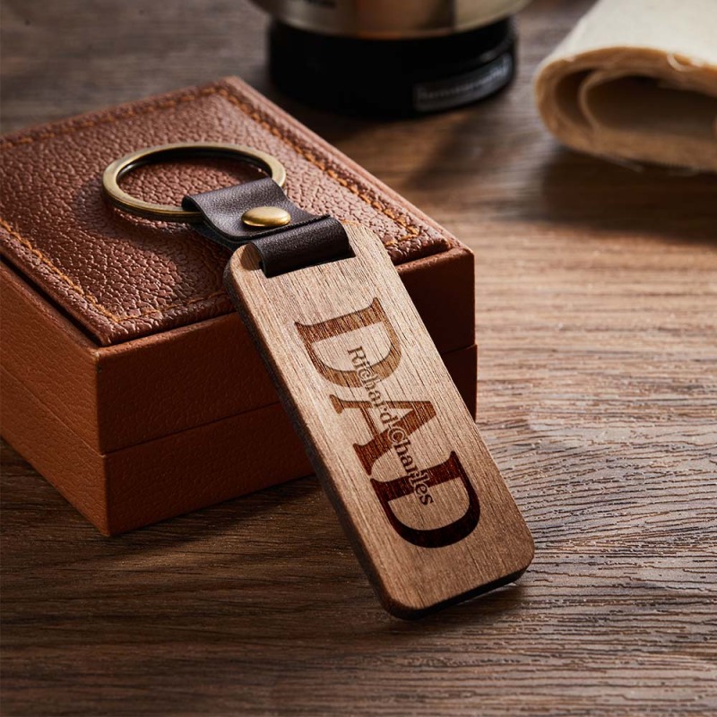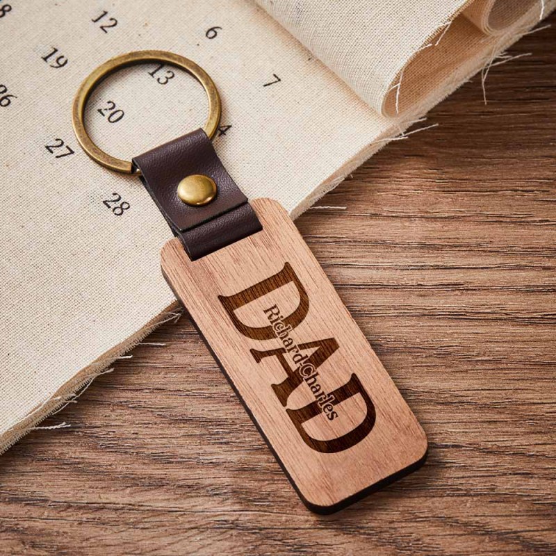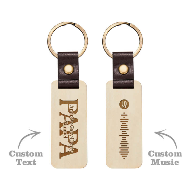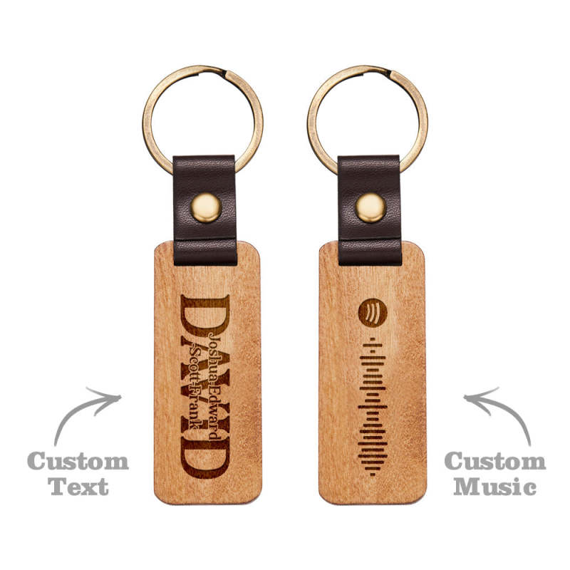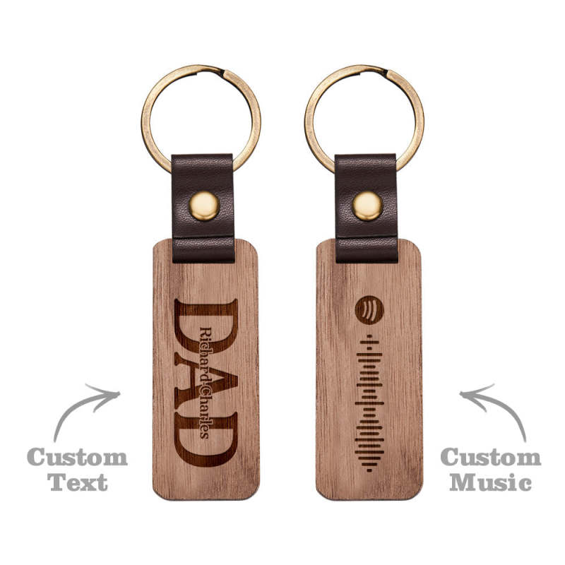 Dad Wood Keychain Custom Engraved Keychain Father's Day Gifts with Spotify Code