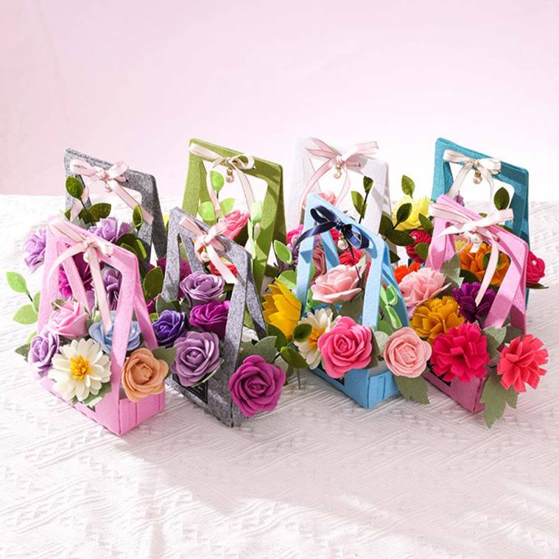 DIY Card Mother's Day Gifts Pink Roses Flower Basket Non-woven Fabrics