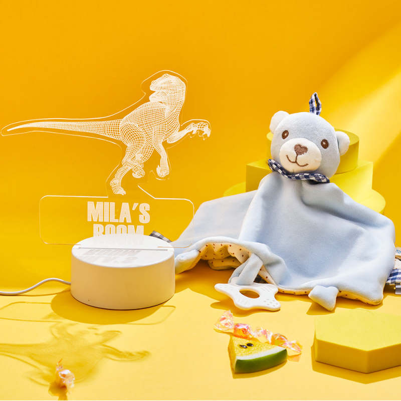 Personalised Gifts for Babies Gift for Newborn Custom Dinosaur Illusion Lamp And Baby Comforter Toy Teething Ring Toy Blankie