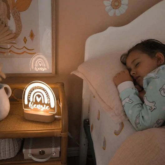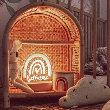 Personalised Baby Gift Nursery Decor Custom Name Night Light Boho Rainbow Shape Light