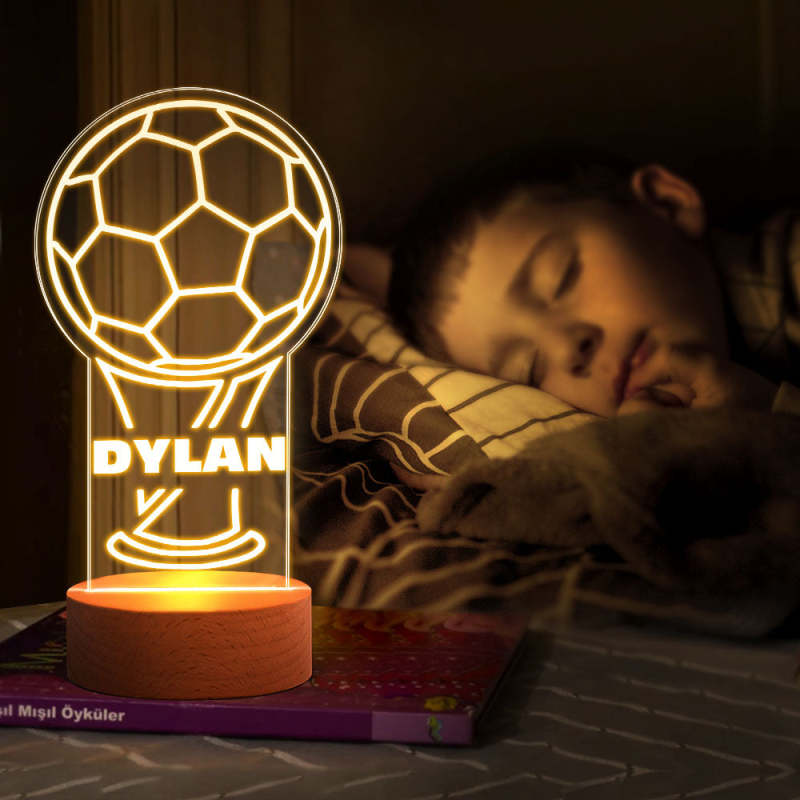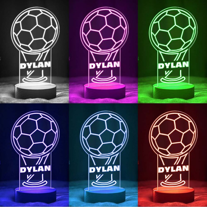Personalised LED Football Trophy Night Light Multicolour Boys Bedroom Decoration