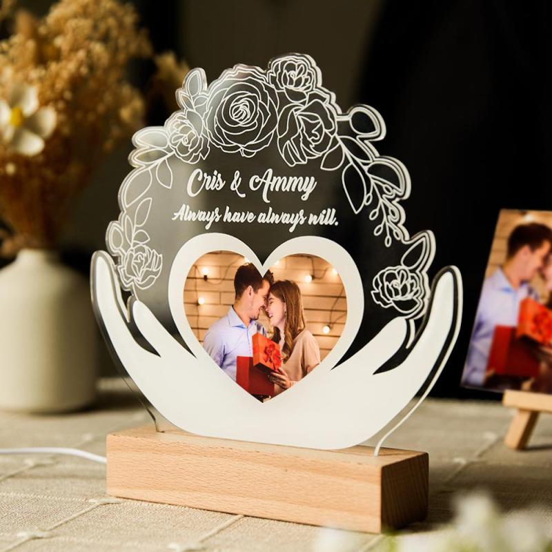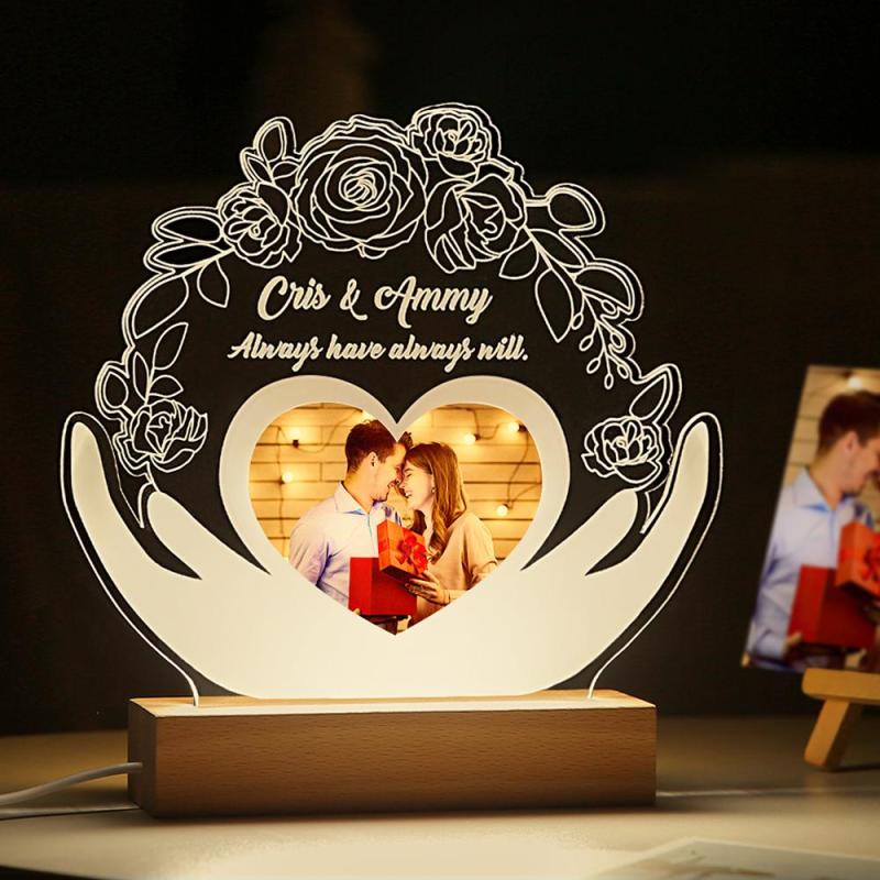Personalised LED Trophy Acrylic Light With Name Photo Gifts For Couples