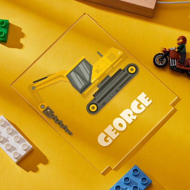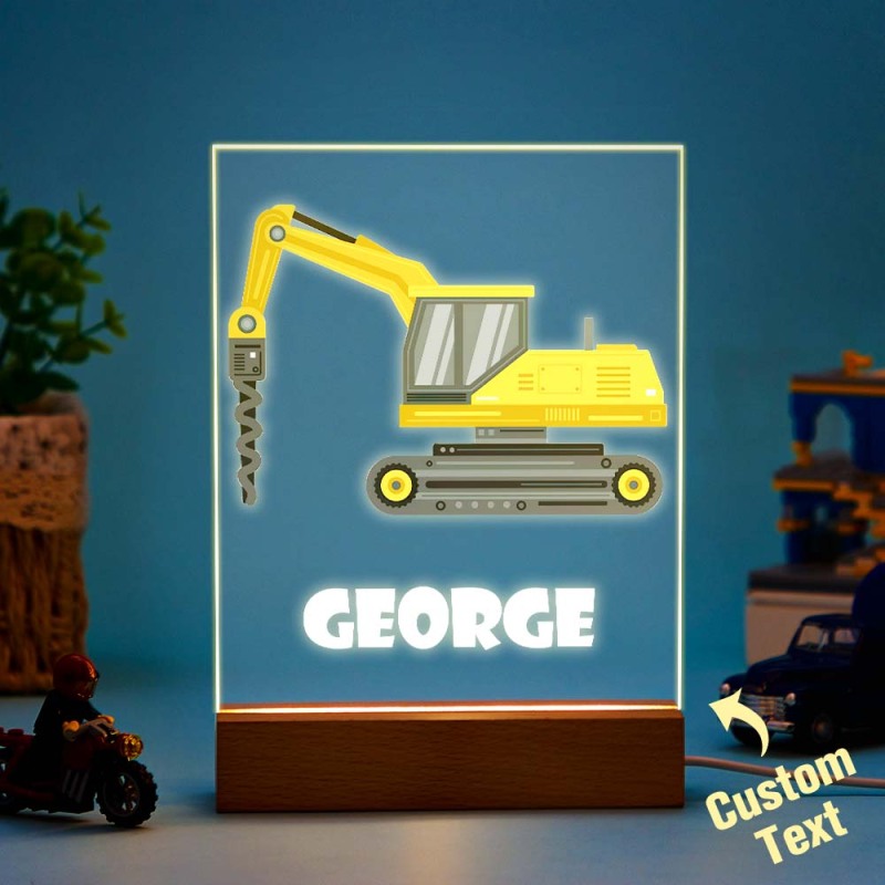 Personalised Machinery Night Light for Kids Excavator Mining Truck Bobcat Gifts For 7 Years Old Boys