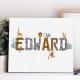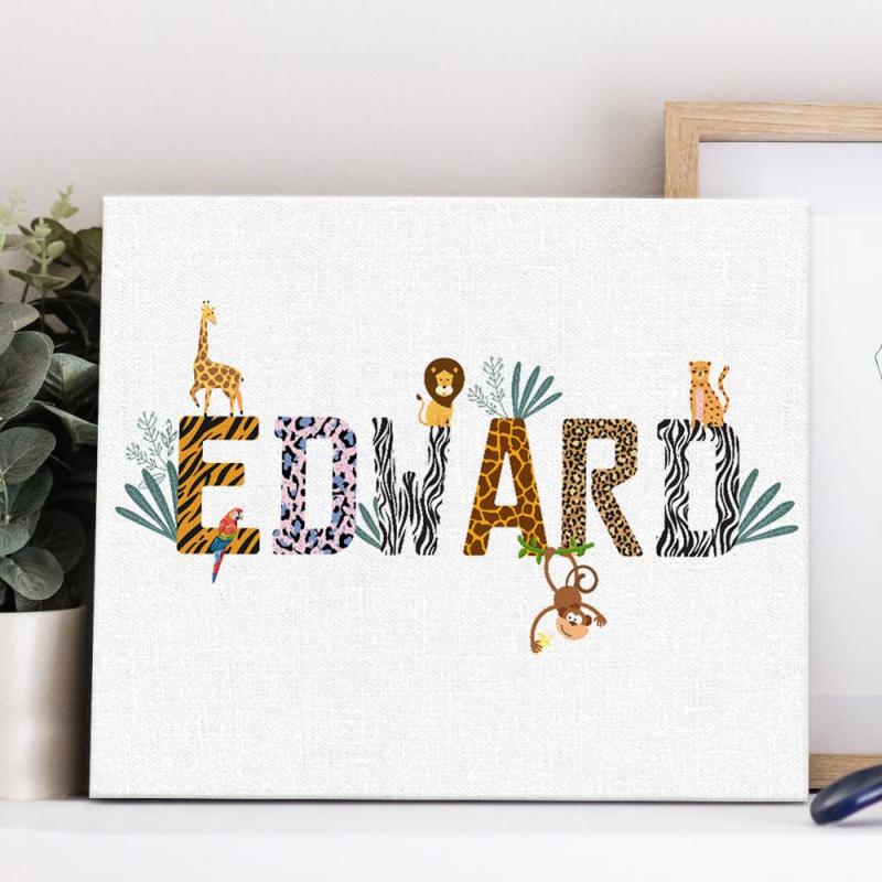 Personalised Name Wall Art Print Safari Themed Animal Nursery Decor Newborn gift