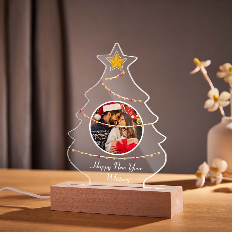 Personalised Christmas Tree Photo Night Light Custom Engraved 3D Lamp 7 Colors Acrylic Night Light Christmas Day Gifts