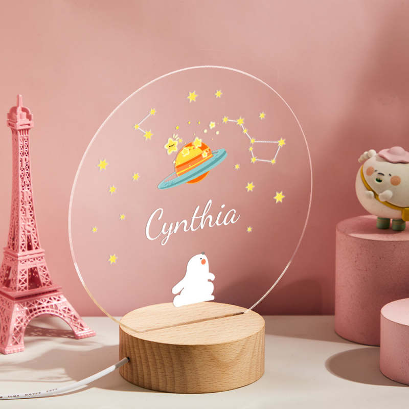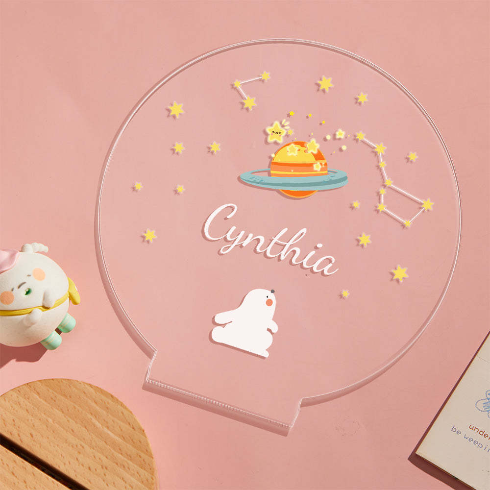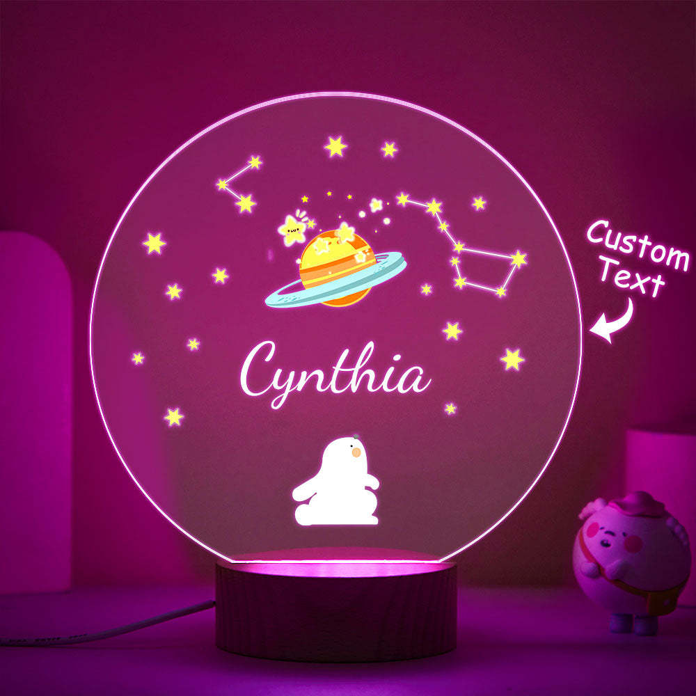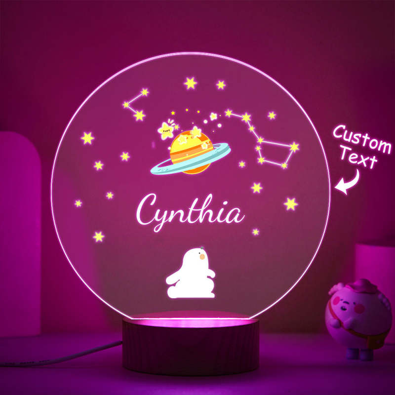 Personalized Name Children's Night Light Rabbit and Star Nursery Room Lamp Cute Table Light