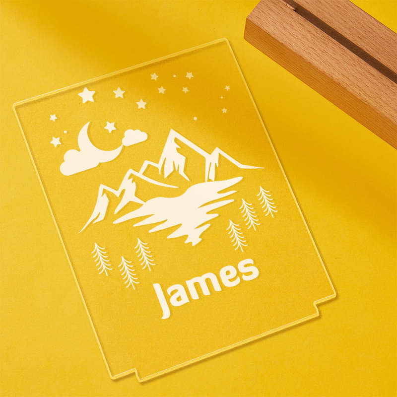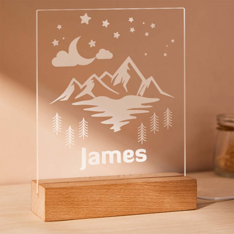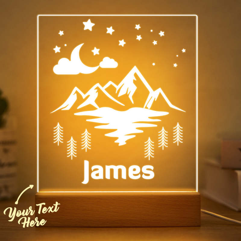 Personalized Name Night Light with Mountain Moon Starry Night Cloud Baby Gift Name Sign Lamp Nursery Boy Decor
