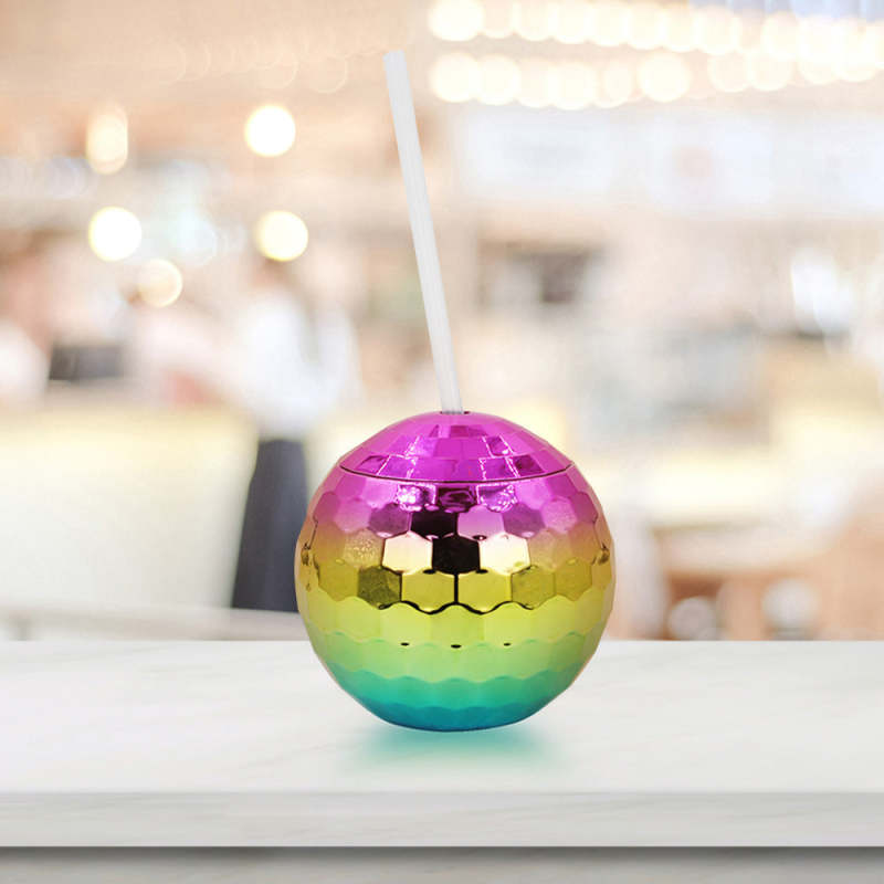 Wine Cups Mosaic Mirror Tiles Disco Flash Ball Cocktail Cup with Lid and Straw Party Supplies