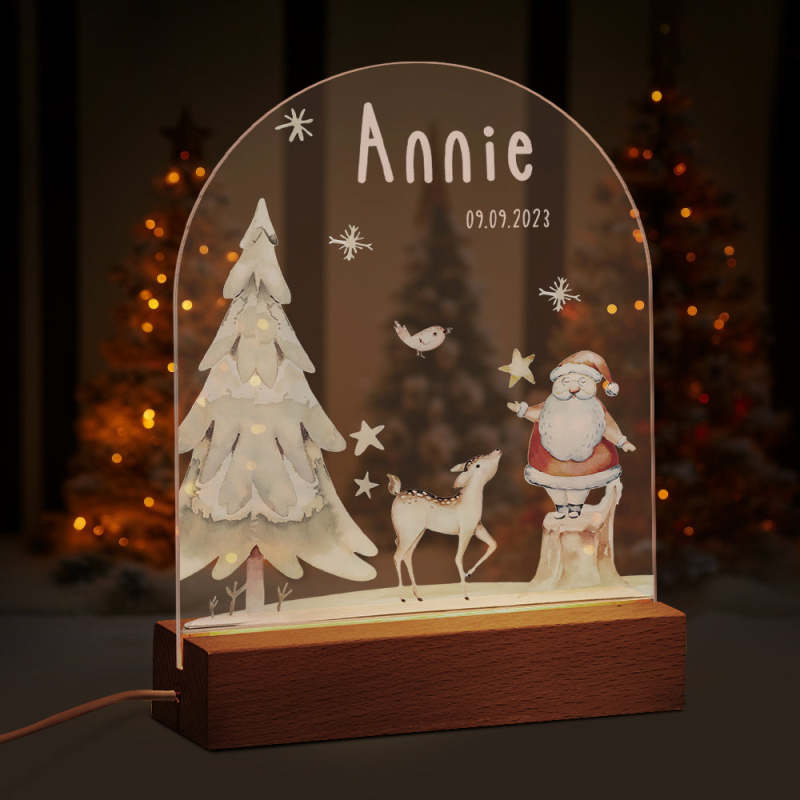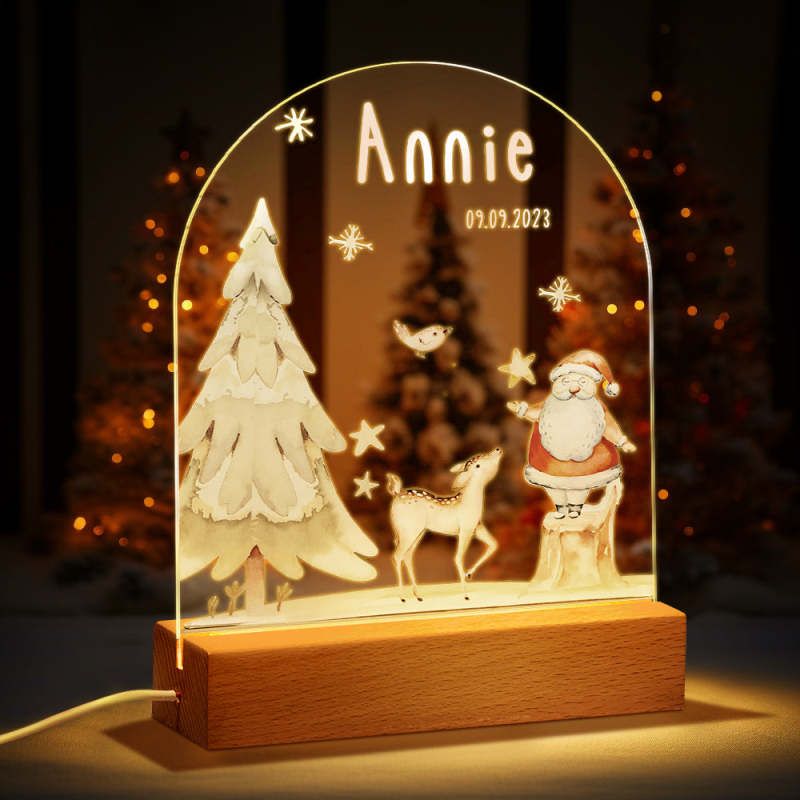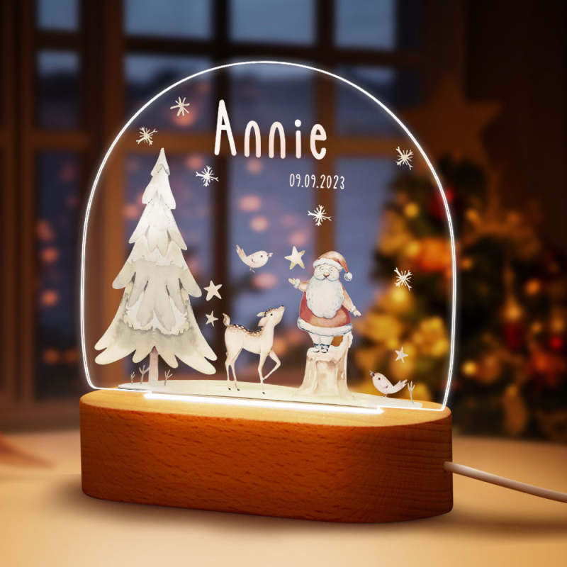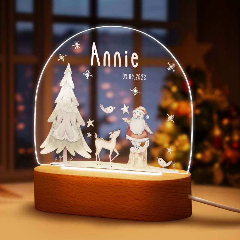 Custom Name Christmas Tree Personalized Santa Elk Baby Night Light Bedroom Christmas Gift