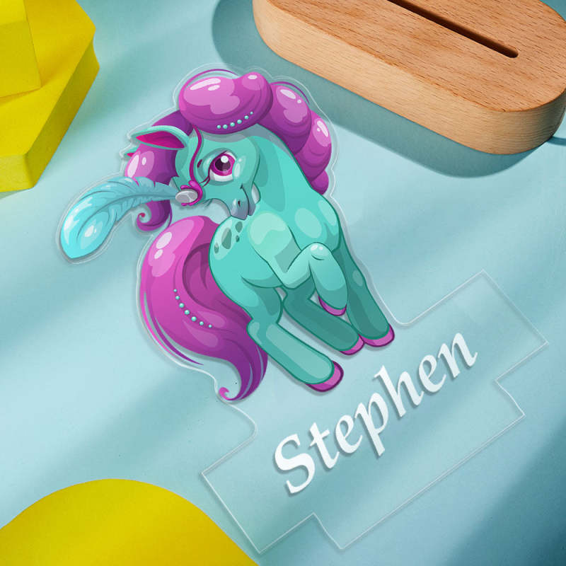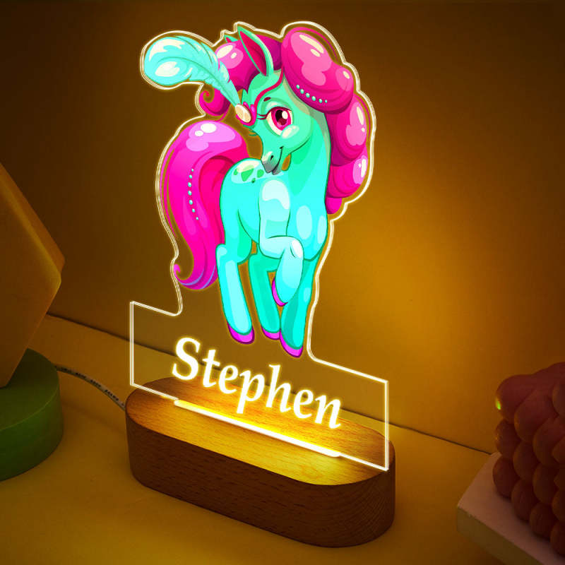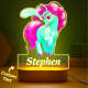 Custom Name Green Unicorn with Pink Hair LED Light for Girl Bedroom