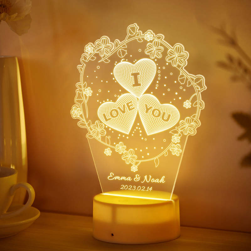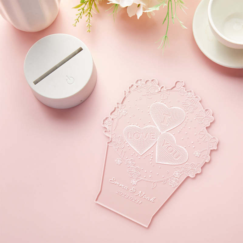 Custom Name Heart Flower Night Light Personalized I Love You For Home Decor