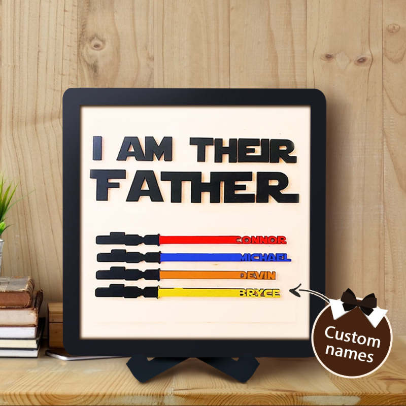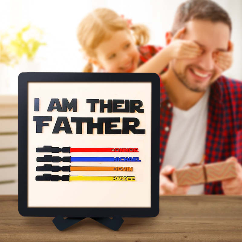 Personalised Father's Day Light Saber Plaque I AM THEIR FATHER Custom Family Wood Signs Engraved with 1-6 Child Names